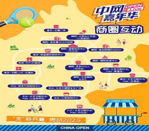 中网赛事信号将同步覆盖18家大型商圈,让市民在购物休闲之余也能感受网球魅力。