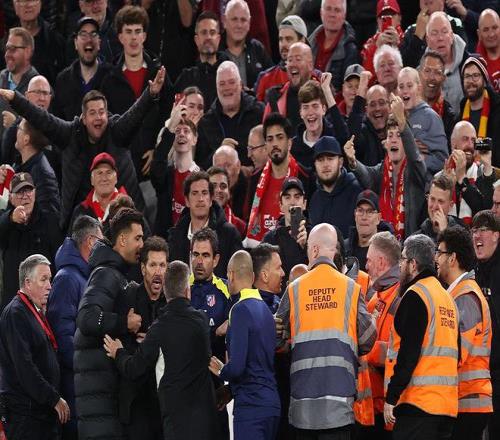 雷速体育10月1报道 欧足联官方针对近期欧战赛事发布多张罚单,其中对于此前利物浦3-2马竞比赛中马竞主帅西蒙尼与利物浦球迷发生冲突一事,欧足联宣布,西蒙尼被停赛1场,而利物浦因主场球迷投掷物品被罚款4000欧元。