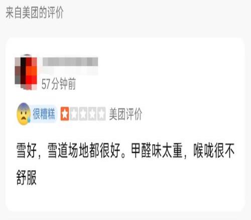 除了配套没完全建好,新装修的“味道”也成了不少人吐槽的点。在社交平台上,关于华发冰雪世界“甲醛味道大”的讨论热度也不小。有网友吐槽“味道大到有点冲”,“建议大家买厚一些的口罩来”;不过也有部分常玩雪的人觉得,味道没那么夸张,“能接受,不算刺鼻”,不同感受还引发了小范围讨论。