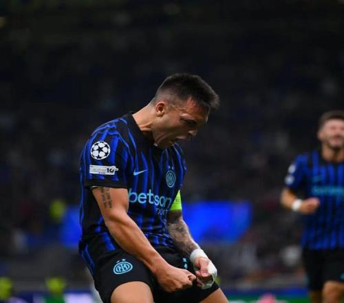 在比赛里梅开二度的队长劳塔罗,赛后被票选为MVP: