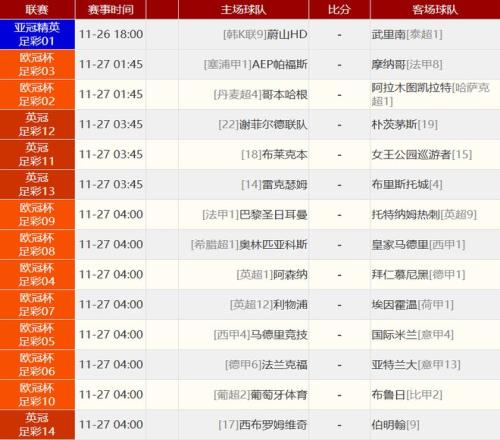 其他赛事比分: