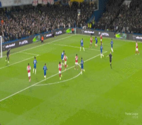 第17分钟,切尔西前场传球快速渗透,埃斯特旺禁区内无人盯防将球打飞了,错失良机。